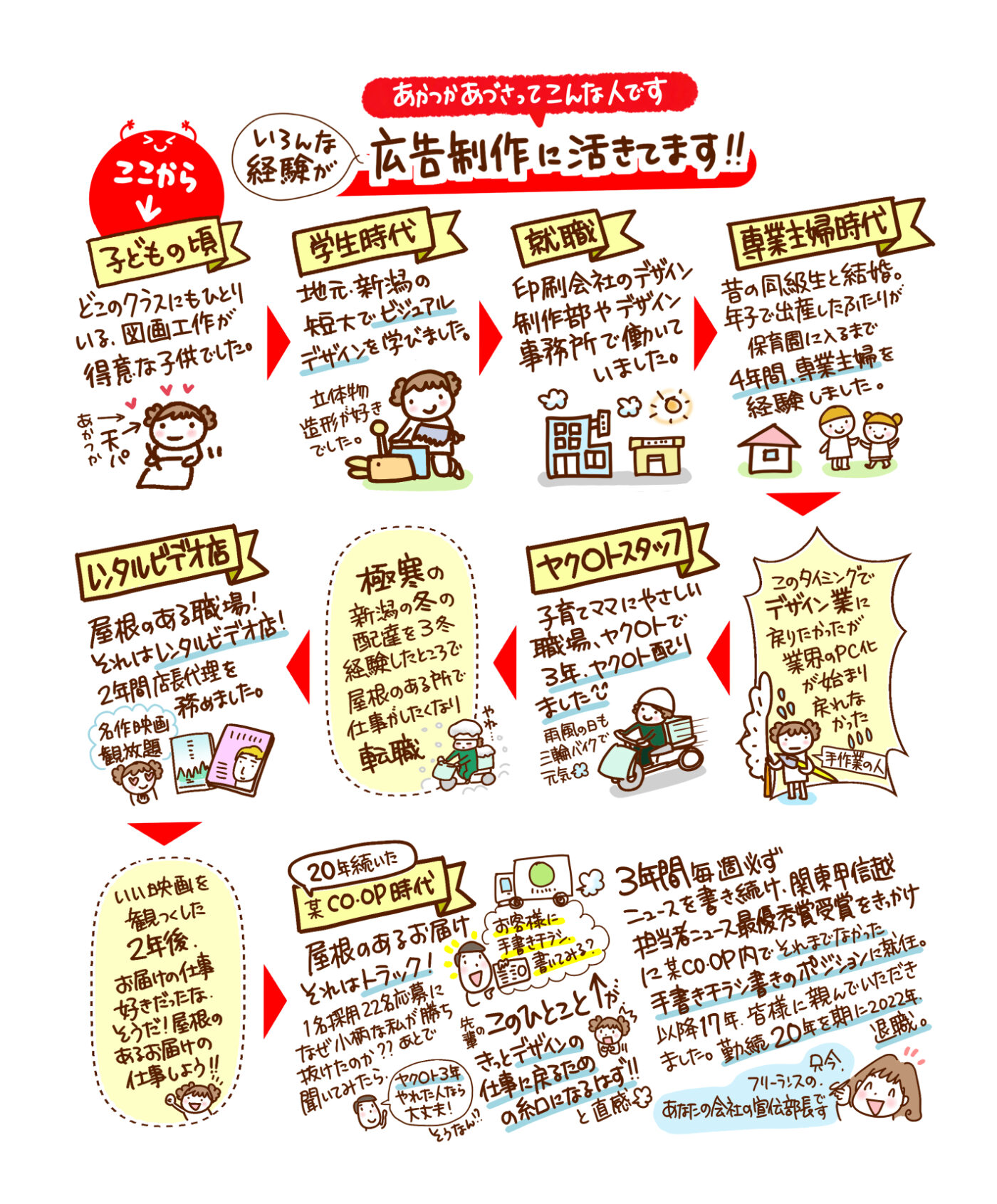 流通・サービス・その他:コープデリにいがた(20年勤務・1600枚以上の制作実績)、 ブルースクレイ・ジャパン株式会社、 奏風システムズ株式会社、株式会社、株式会社yori-i、東京新聞都内北部センター、行政書士法人 田村環境事務所、行政書士事務所オフィスサクマなど