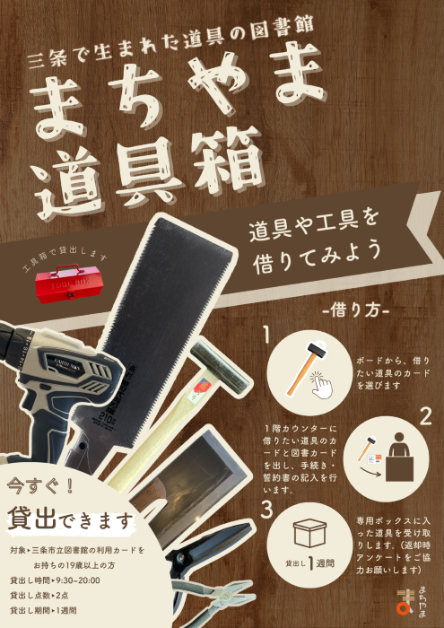ものづくりの街で生まれた道工具を「図書館で借りる」レンタルサービスです。 地場産業の素晴らしい技を”知る”。実際に使って”感じる”。これらを手軽な形で実現することで、地元への誇りを”育てる”ことを目指しています。