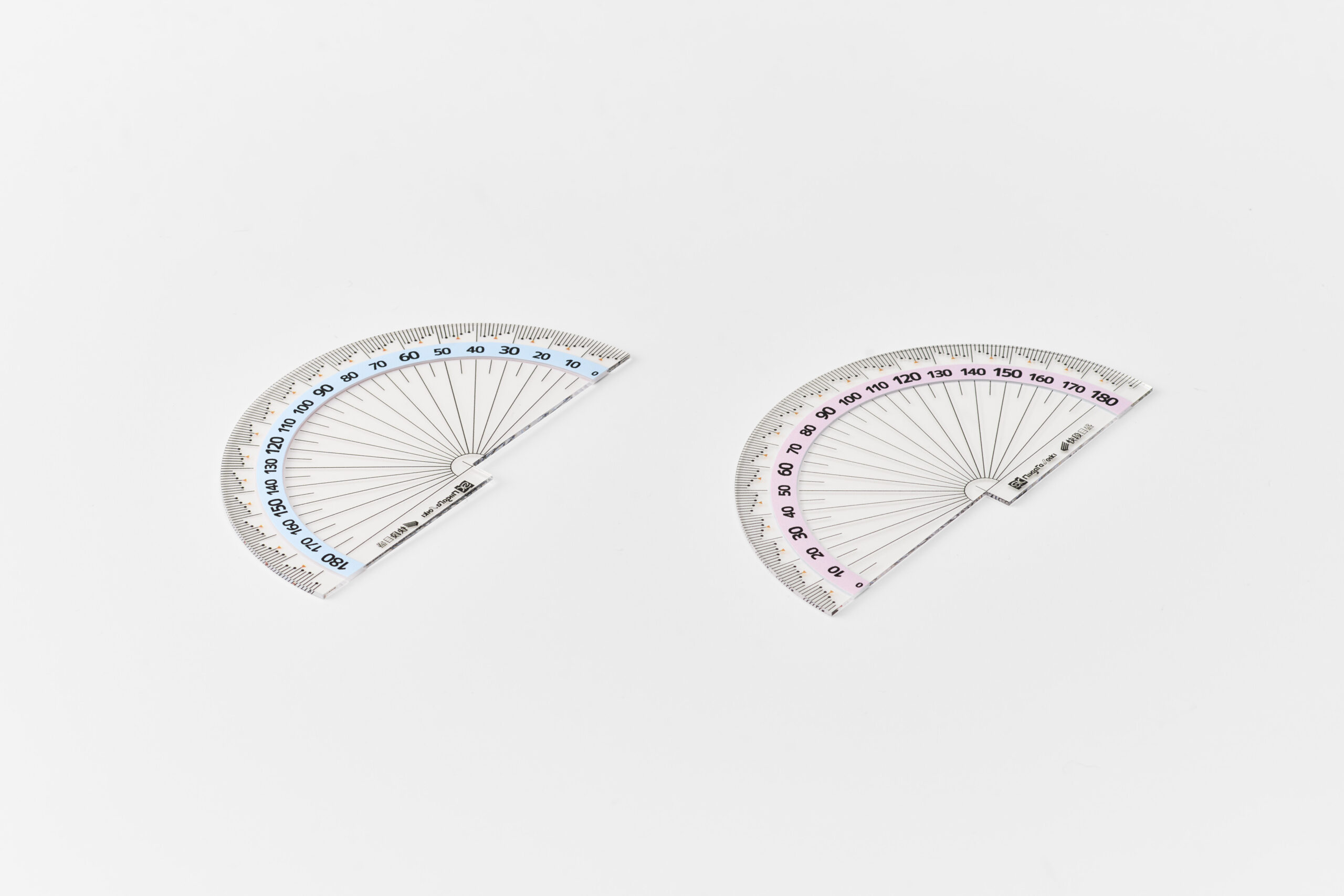 小学校教育の新定番、両面に数字が印刷された分度器です。使う数字しか見えないから読み間違えずに使えます。本体下部の段差で基準の0に合わせるのも簡単。子どもの苦手克服をサポートする分度器です。