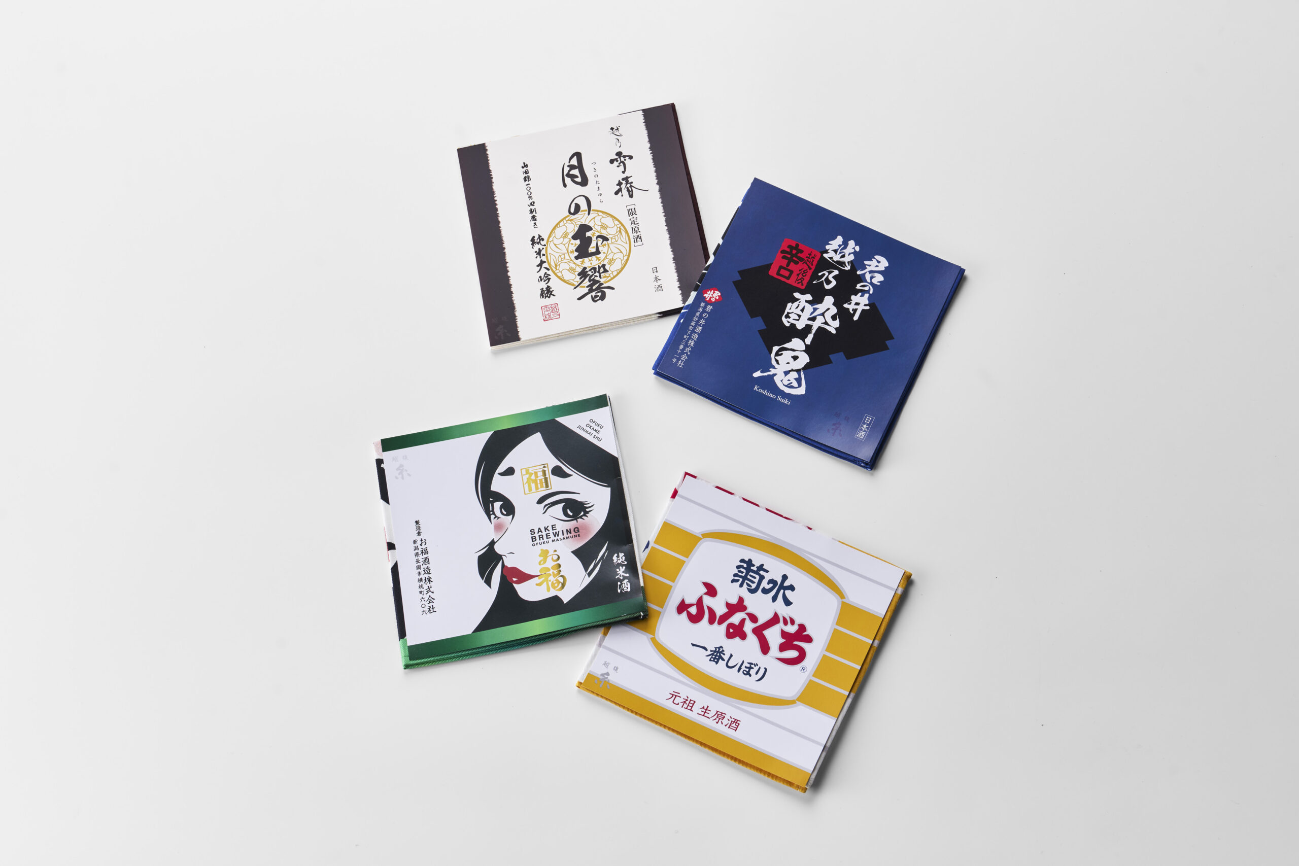 「新潟の誇る日本酒文化をポケットに」越乃ラベルハンカチは、日本酒ラベルのデザインをそのままに、飲まなくても楽しめる“文化にふれる小さなきっかけ”となる、身近に持てる新しい新潟のお土産です。